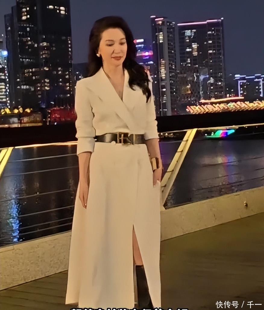 那天,她以淡妆出场,清晰透亮的底妆掩盖了眼角的细微纹路,眉毛自然柔和,唇色倾向淡雅的豆沙色。微笑时,眼眶泛着光泽,没有刻意扮嫩,却自散慑人温柔气息。