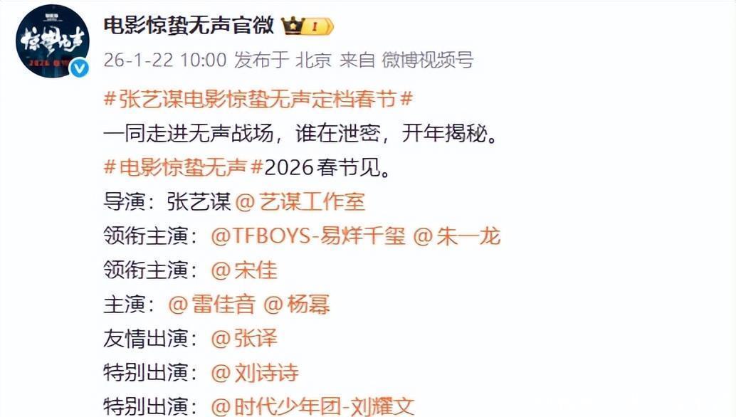 官媒一句话,所有谜团都解开了2026年1月,官媒突然发布了一条消息:张译将在张艺谋新片《惊蛰无声》中友情出演。这条消息的信息量太大了。友情出演这四个字,意味着张译不是为了片酬和资源去接这部戏的。能让他息影9个月之后复出的第一部作品,只能是张艺谋。